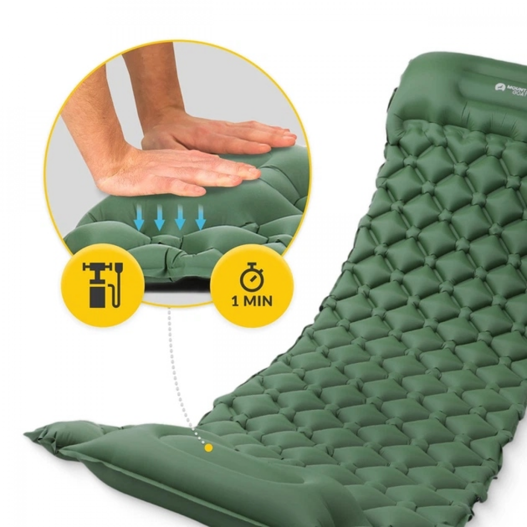 Надувной каремат предназначен для комфортного отдыха на природе, в походах и кемпинге. Обеспечивает изоляцию от холодной поверхности и повышает удобство во время сна.