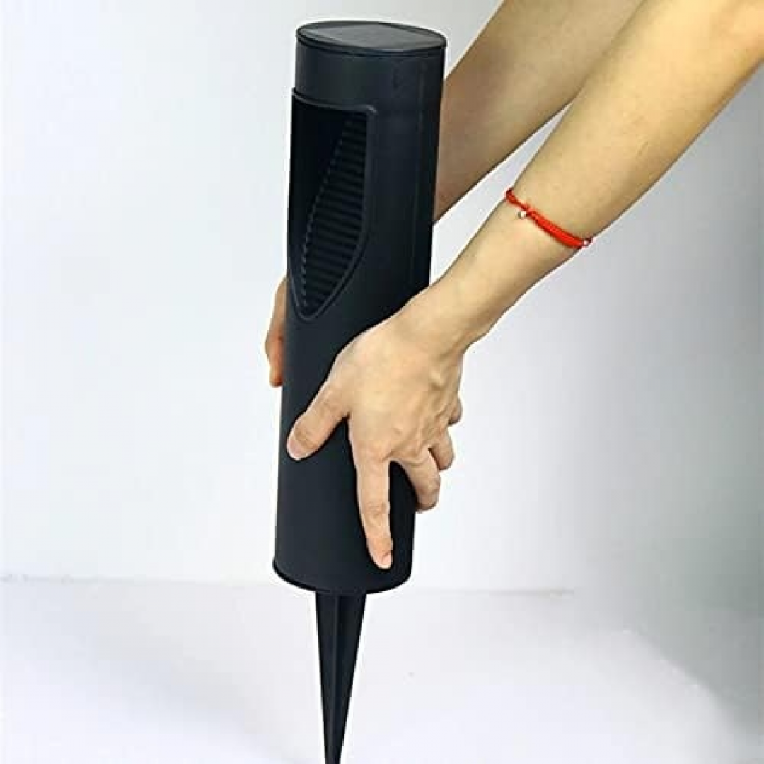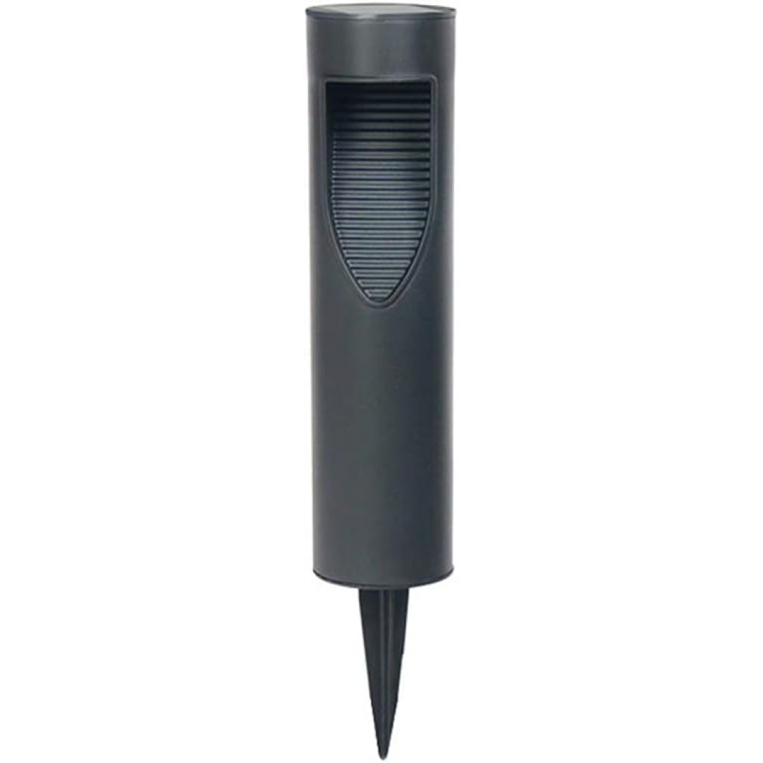 Корпус выполнен в форме столбика с направленным световым окном, создающим мягкое локальное освещение. Устанавливается в грунт с помощью заострённого основания без необходимости прокладки проводов.