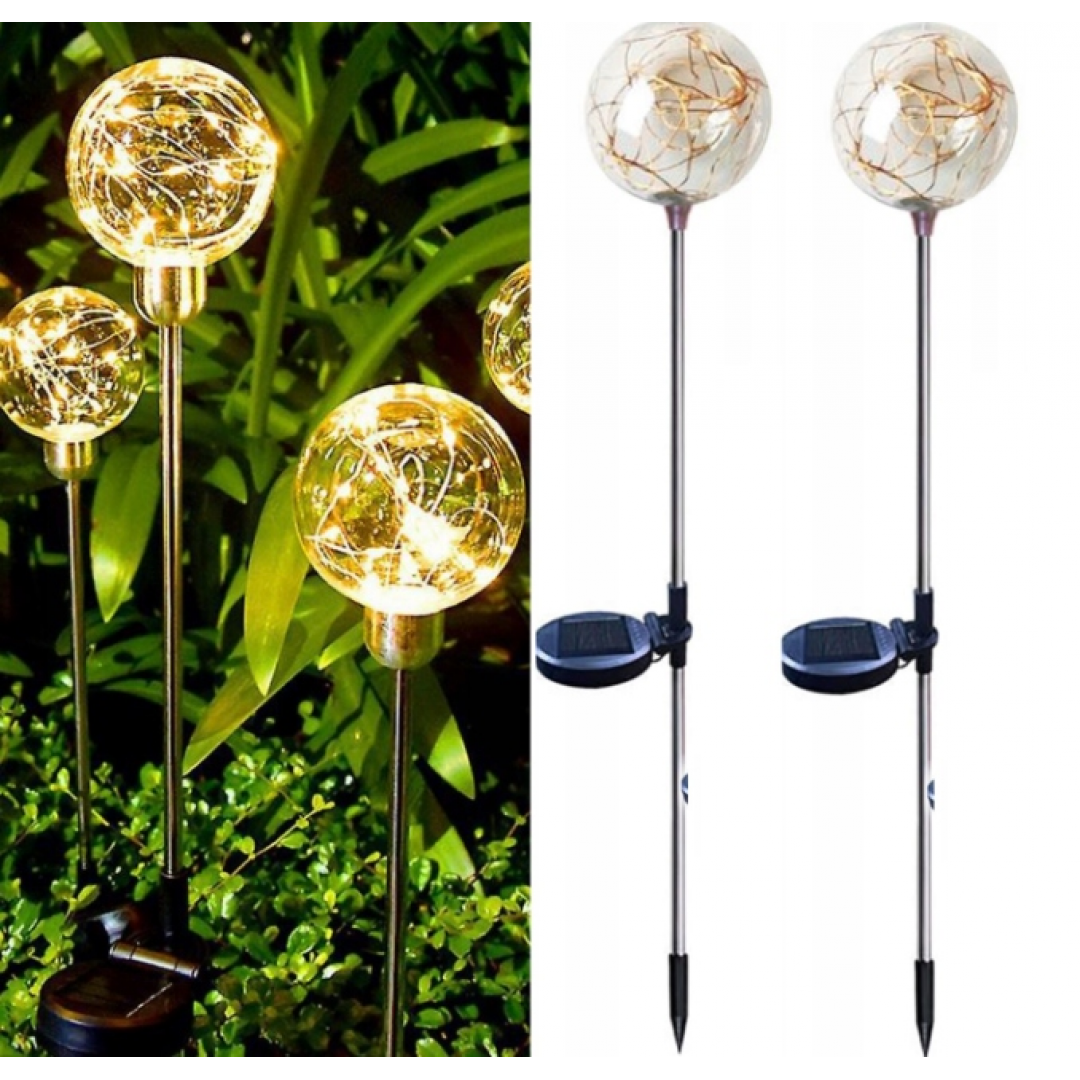 Внутри прозрачного шара размещена гирлянда из 20 светодиодов, создающая тёплое равномерное свечение. Светильник устанавливается в грунт с помощью колышка и подходит для оформления дорожек, клумб и зон отдыха.