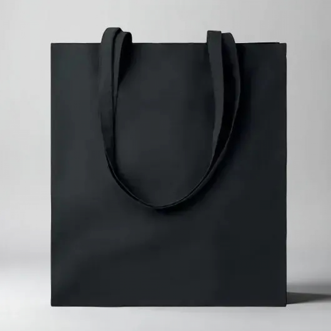 Чёрный шоппер 25-144 (26-61) на молнии с карманом без рисунка 40х34см